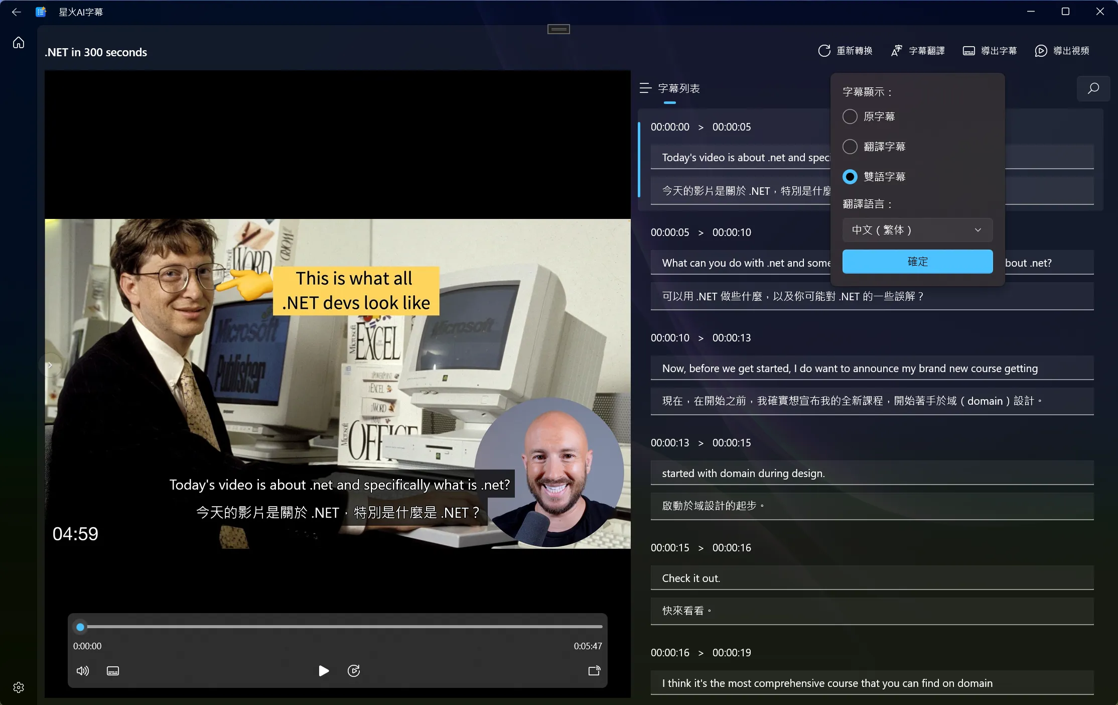 多模型驅動的專業影片翻譯與字幕工具。一鍵生成逐字稿,準確安全,永久免費可用!